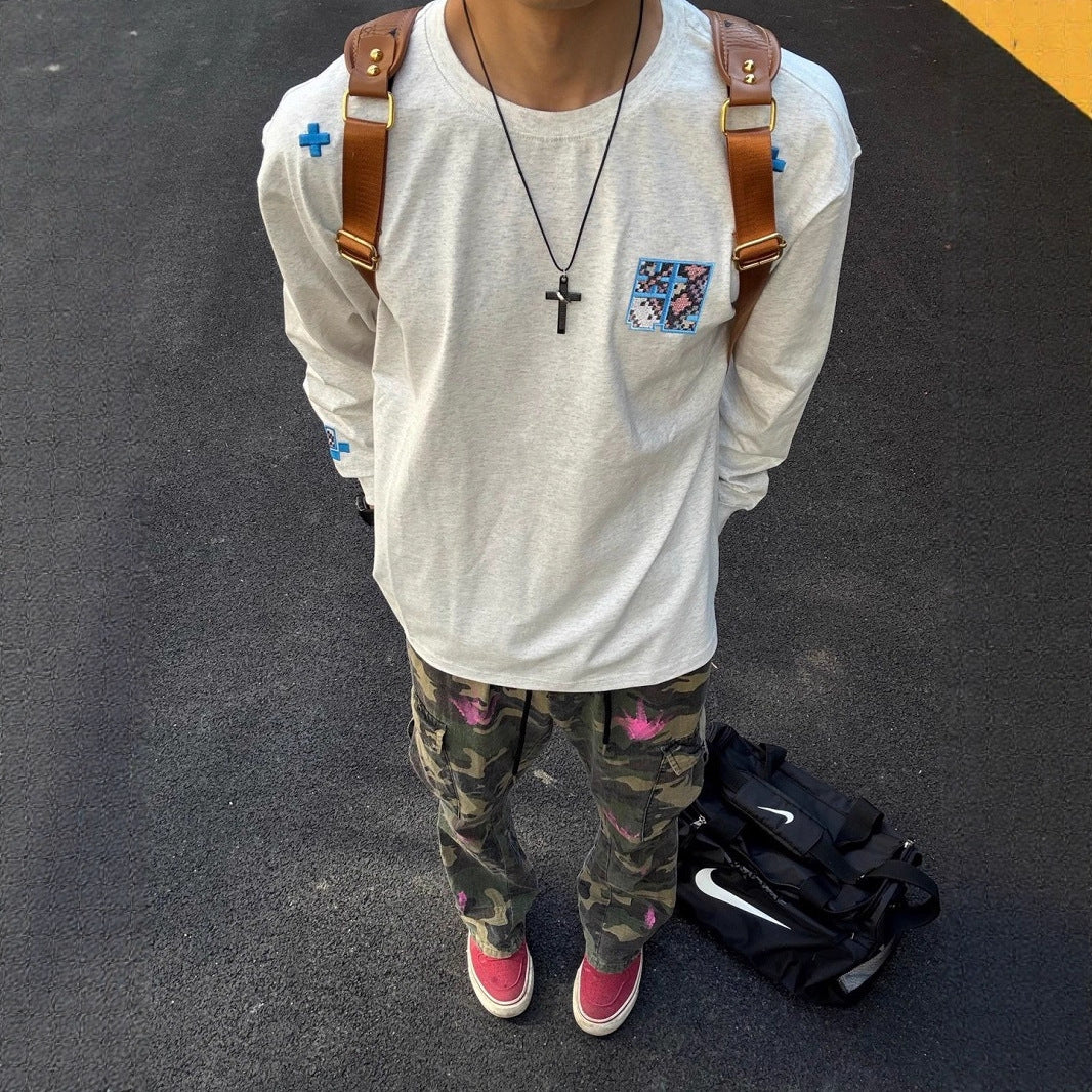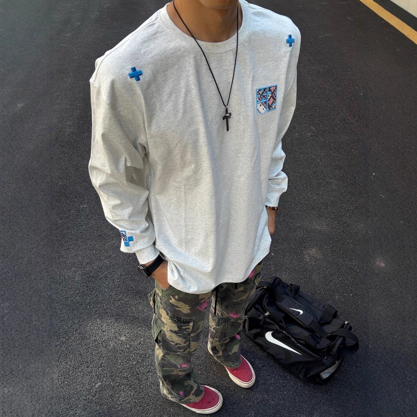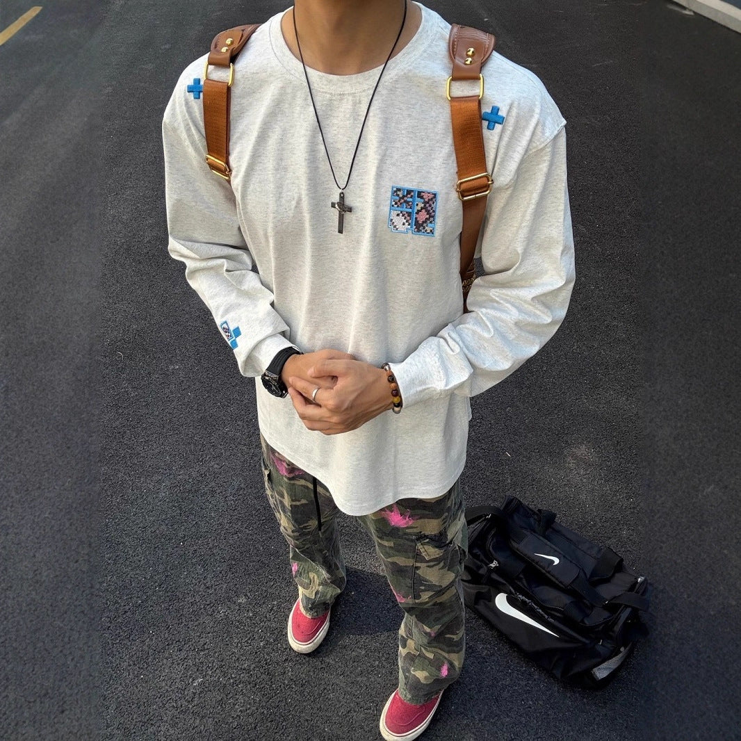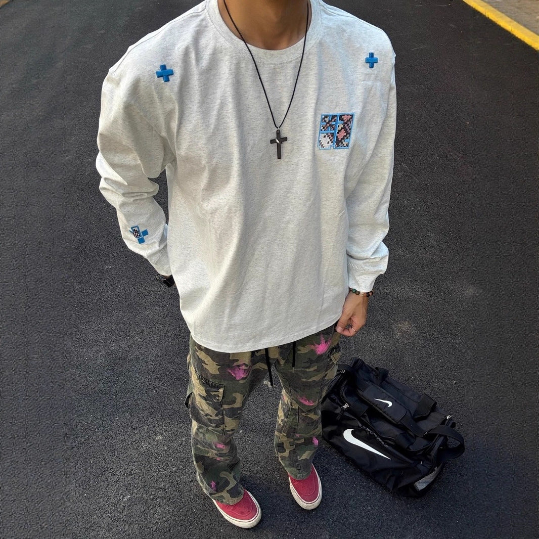 Style Heavyweight Cotton Long Sleeve T-Shirt for Men and Women, Autumn New Loose Fit Unique Design Embroidered Couple Top